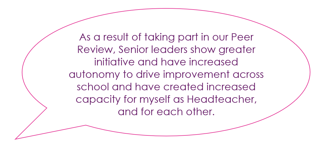 The host school is always in control. The Peer Review team, including the Lead Facilitator, are in the school to support the school to feel confident in their evaluations, and to support them in developing quick win actions and strategic opportunities.